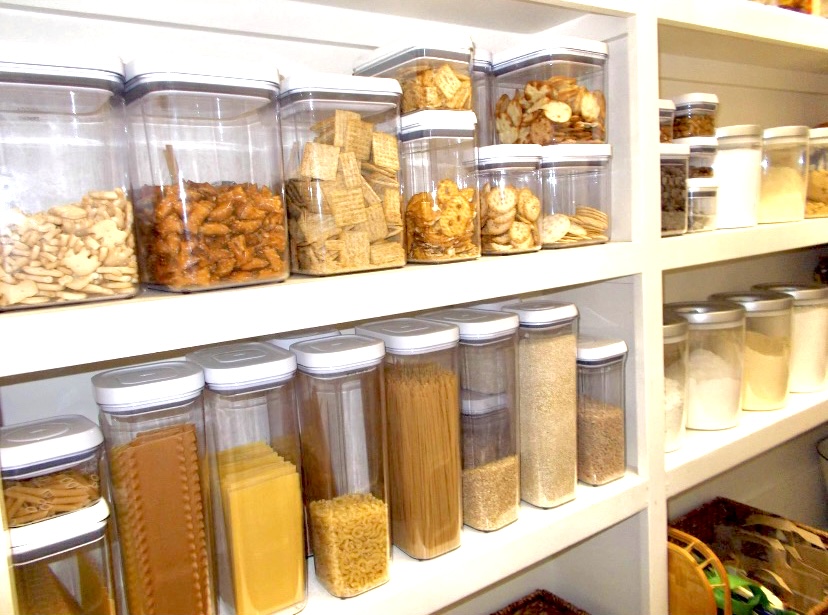 And I wanted to show a close-up of how we organized all her cardboard contained items into clear food safe heavy plastics. This has been my “rule” for kitchen pantries for as long as I can remember having young children myself: