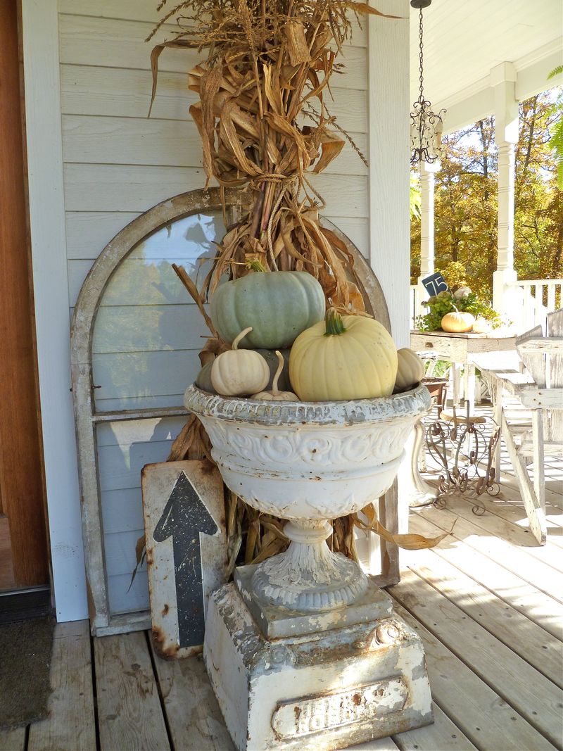 How nice would that look all roped up and placed on my porch with a collection of vintage French finds like a good chipped urn and arched window. Fill the urn with pumpkins and what an interesting conversation piece and just a perfect touch of fall pretty on the front porch!