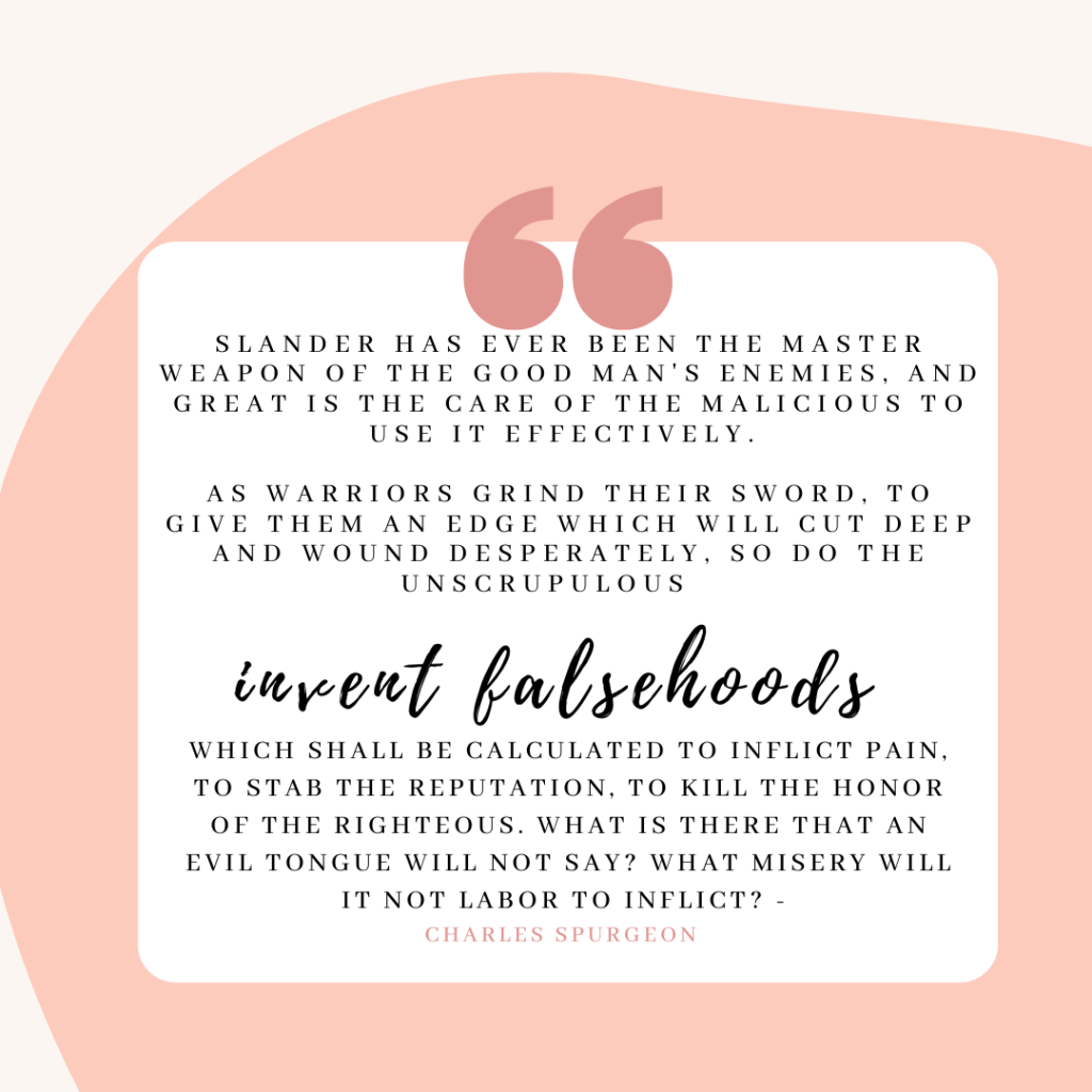 Yesterday, as I was home enjoying Presidents Day, the warm weather beckoned me to lace up my tennis shoes and go for a long brisk walk. Grace to You website is where I went on my phone and selected the “sermons” category and listened to Part 1 of Dr. John MacArthur’s message, “The Blasphemous Sin of Defaming Others.” It was the fastest hour I’ve ever walked. The time flew by because I honestly couldn’t get over what he was saying when it comes to how God hates gossip. Hates slander. Hates the speech that injures the reputation of another believer. He went on to teach (using Old and New Testament Scriptures), why it is not only a dangerous and destructive sin, but it is one of the evidences of someone who has not experienced a regenerated heart if this is the pattern of their life. If they “walk in gossip and slander” … meaning, they have a habit of talking about others behind their backs, by proclaiming falsely about them, by saying unkind things concerning them with a malicious intent…with impure motives and intentions. They have a habit of back-biting, a habit of talking in such a way that other people will think less of the one they are injuring with their words.