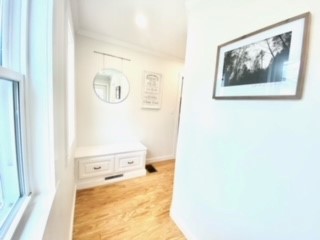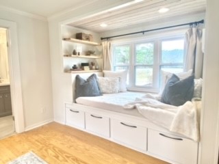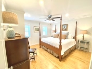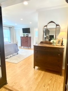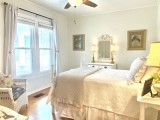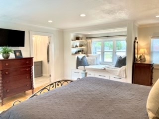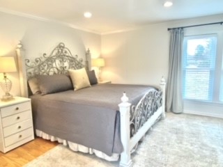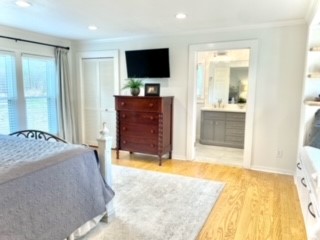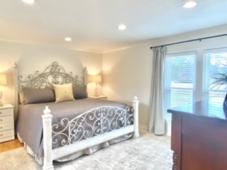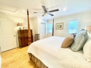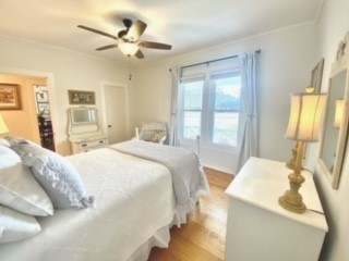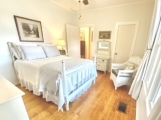 This is another bedroom with a walk-in closet. Plenty of natural light and the view is seeing right onto the front porch. It also has a bathroom nearby.