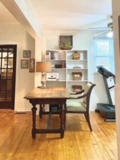 As you make your way through, you come to this space – it can be used for so many purposes, but we use it for a home office and my workout space. But it can easily accommodate a sectional, sofa and chairs, could be set up as a home gym. There is a fire place and flat screen in this room. There are two 5-panel doors that lead to this space, and when they are both closed, it is a great “extension” to the Master bedroom as you will see in the next photos.