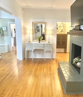 Off the dining room there is a small hall with a couple of furniture pieces in it, but it connects the dining to a bedroom, and to the west side of the house.