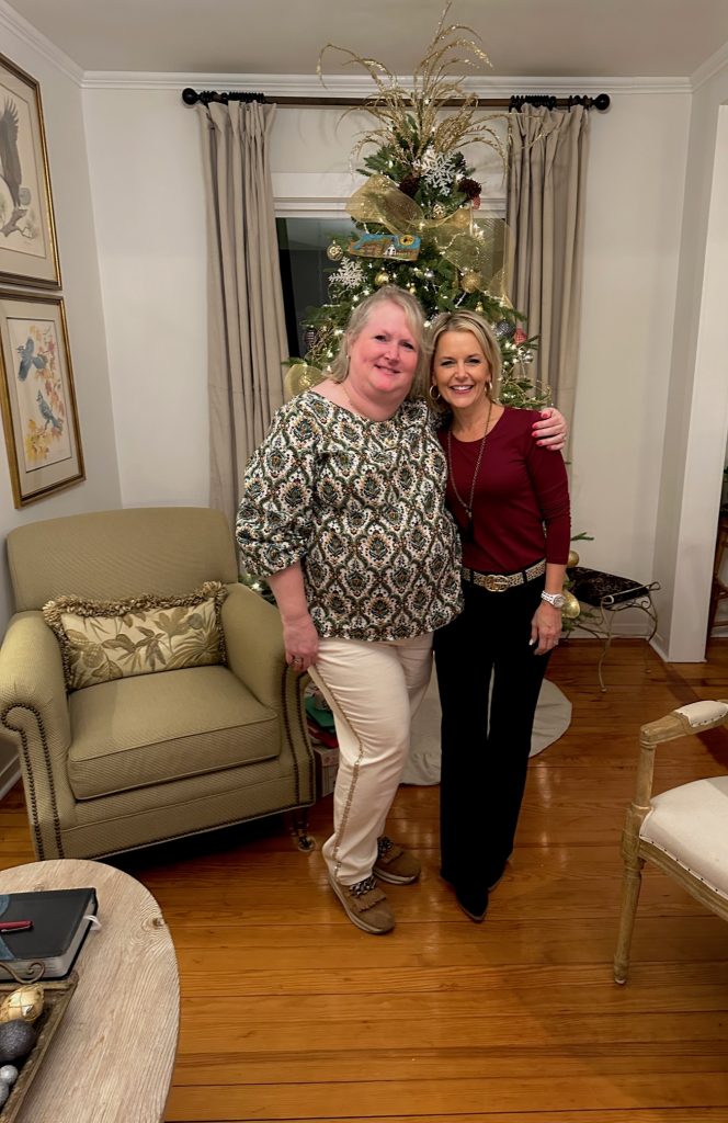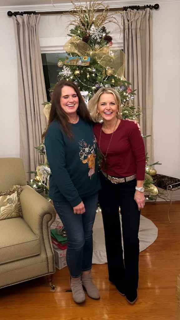 And here is mine! Susie Morgan is not only my cousin, but she is by far THE SWEETEST most caring and MOST GIVING person! She lives to bless others when she can, where she can. As she travels through town on work, Rip and I get to have her stay with us and she and I sit up talking and talking and talking. We gave her a house key, too, so she can come and go as she needs, AND because we want her to know that our home is her home. I wish I had taken a photo with her and her husband, Greg, but we were all so busy working puzzles, decorating cookies, cleaning up the kitchen and just relaxing that I plum forgot! But if you scroll back up to the photo of the Harris’ decorating cookies, you can see Greg sitting on the sofa in the background. They have two adult sons, Noel and Eric, who both graduated from Ole Miss.